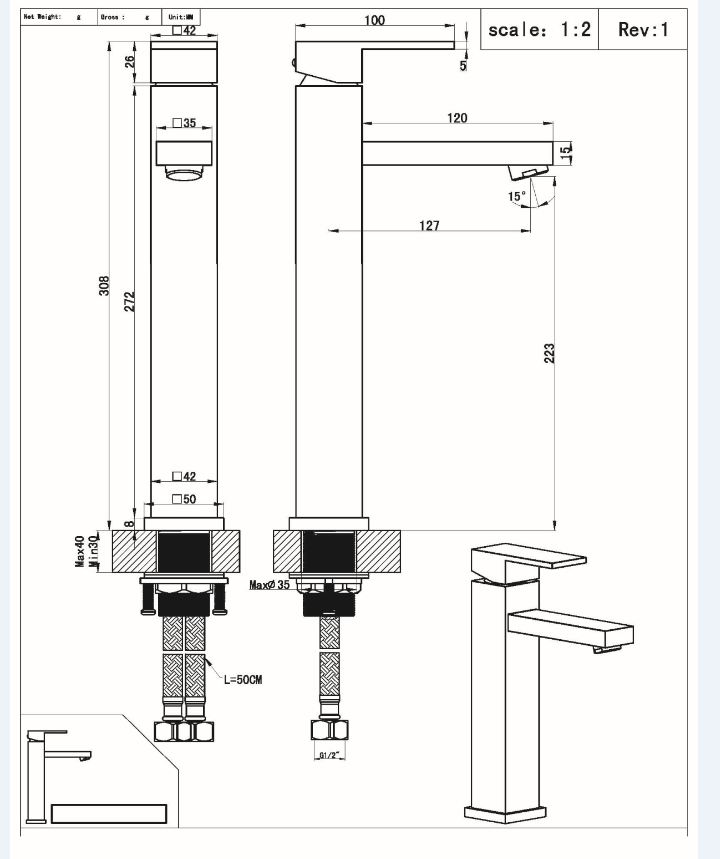 | Totale hoogte | 308 mm |