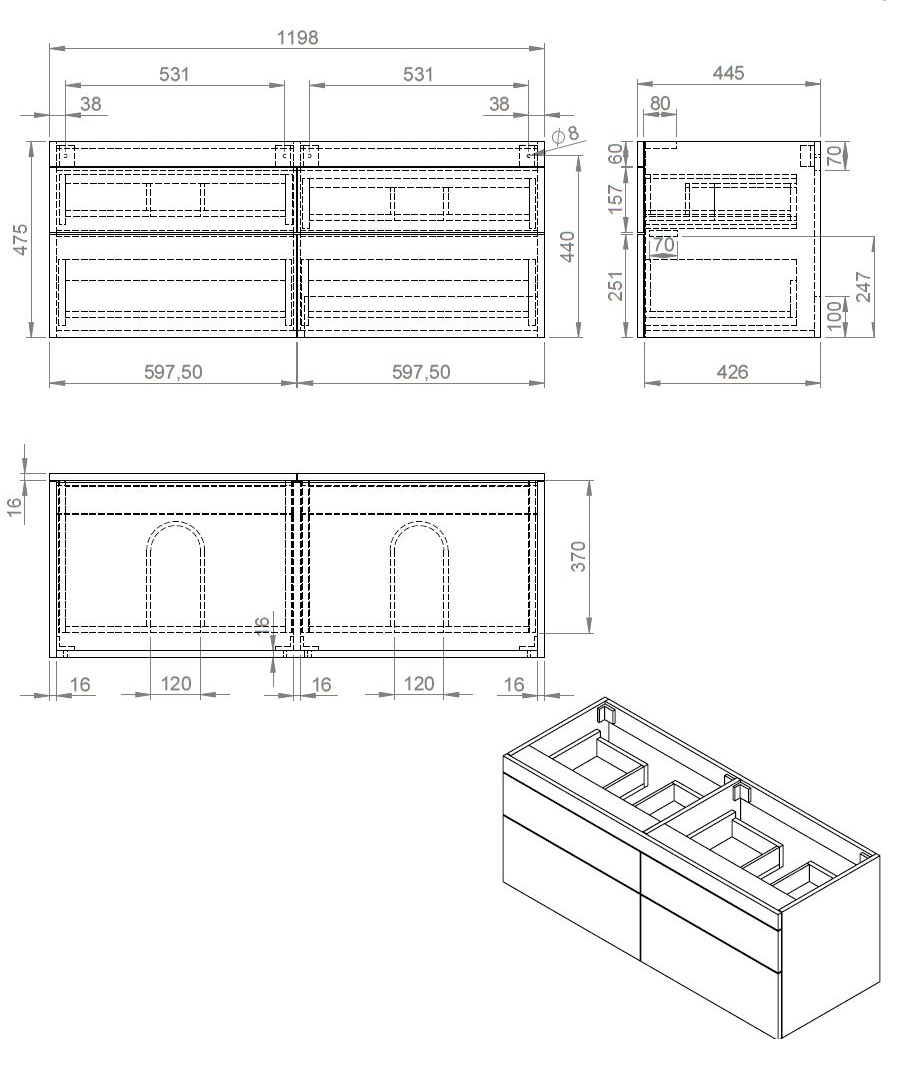 BD - Beauty-120-Halifax-Greeploos meubel onderkast 4-laden