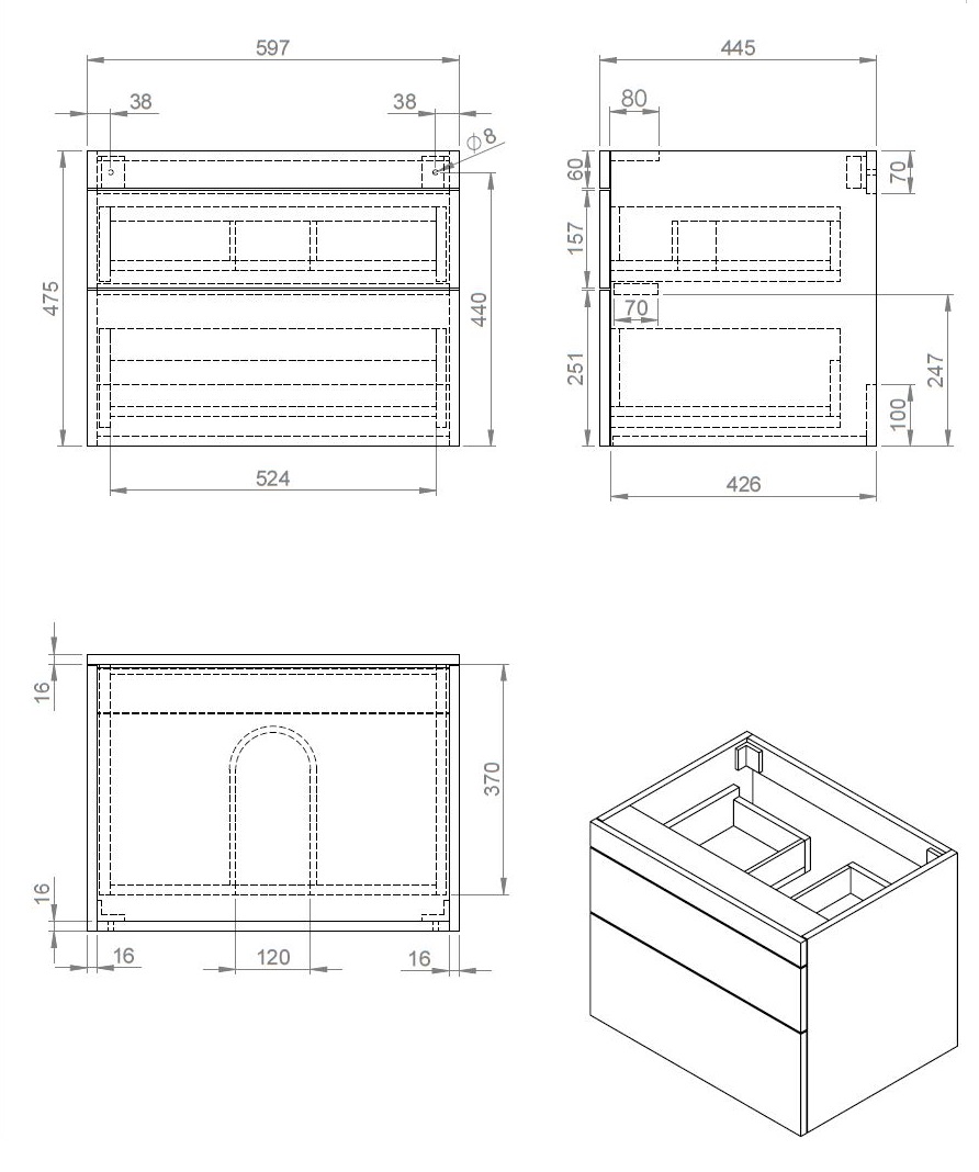 BD - Beauty-60-Mat-Zwart Greeploos meubel onderkast