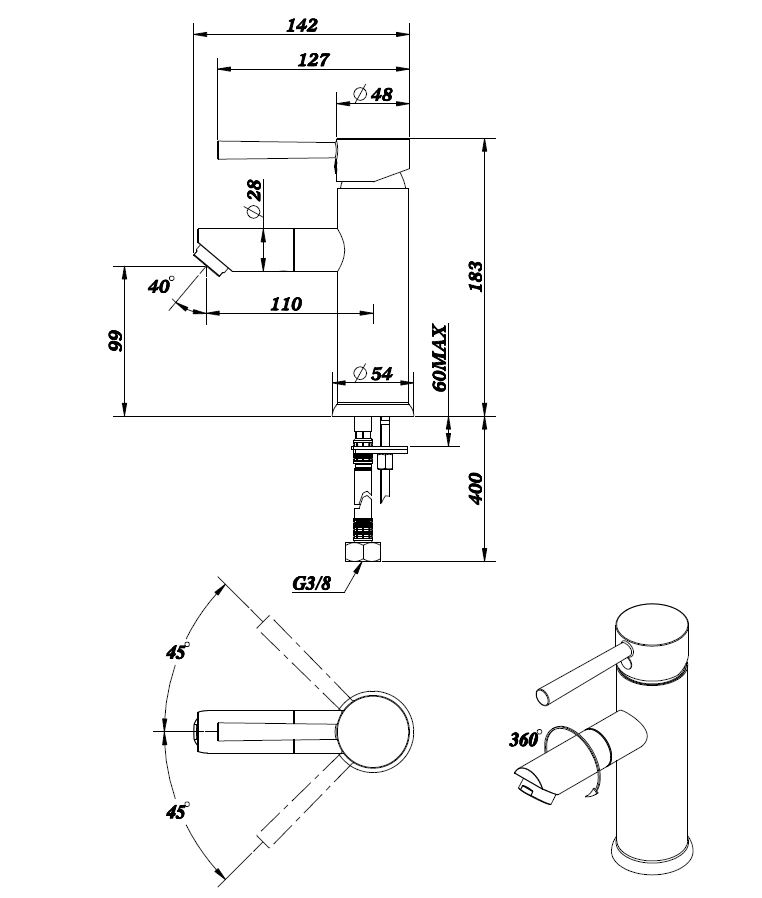 + Draaibare uitloop: Ja