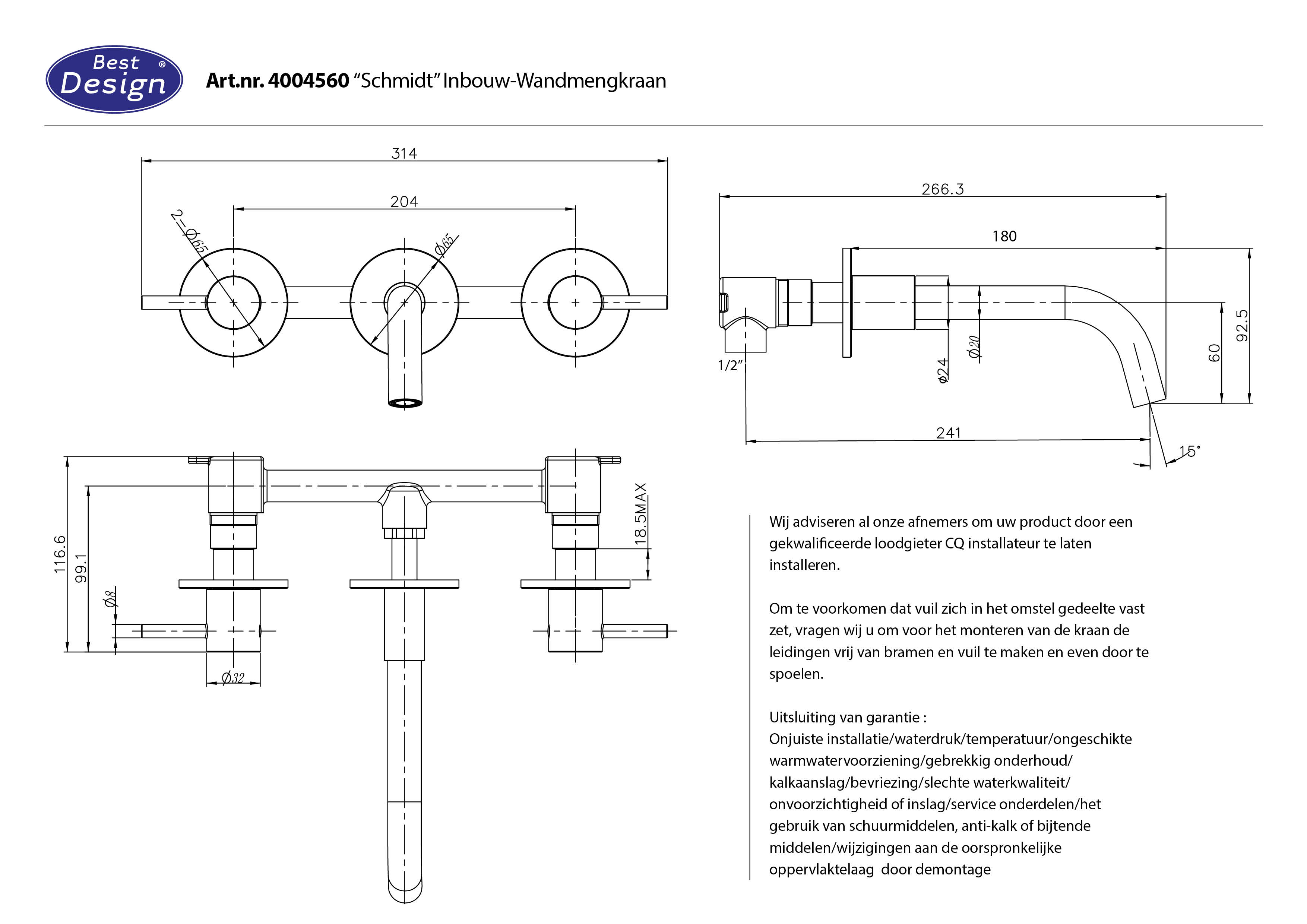 BD - Chrome Schmidt inbouw-wandmengkraan