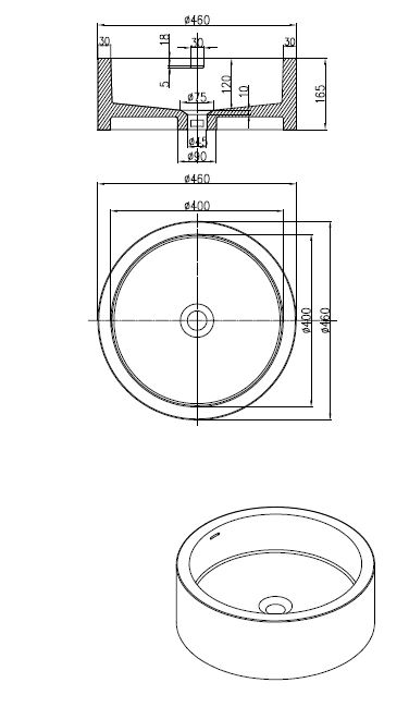 BD - Compo opbouw-waskom Just-Solid 46cm