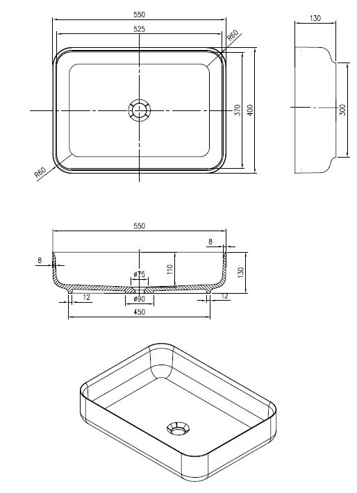 BD - Dipsy opbouw-waskom Just-Solid 55x40x13cm