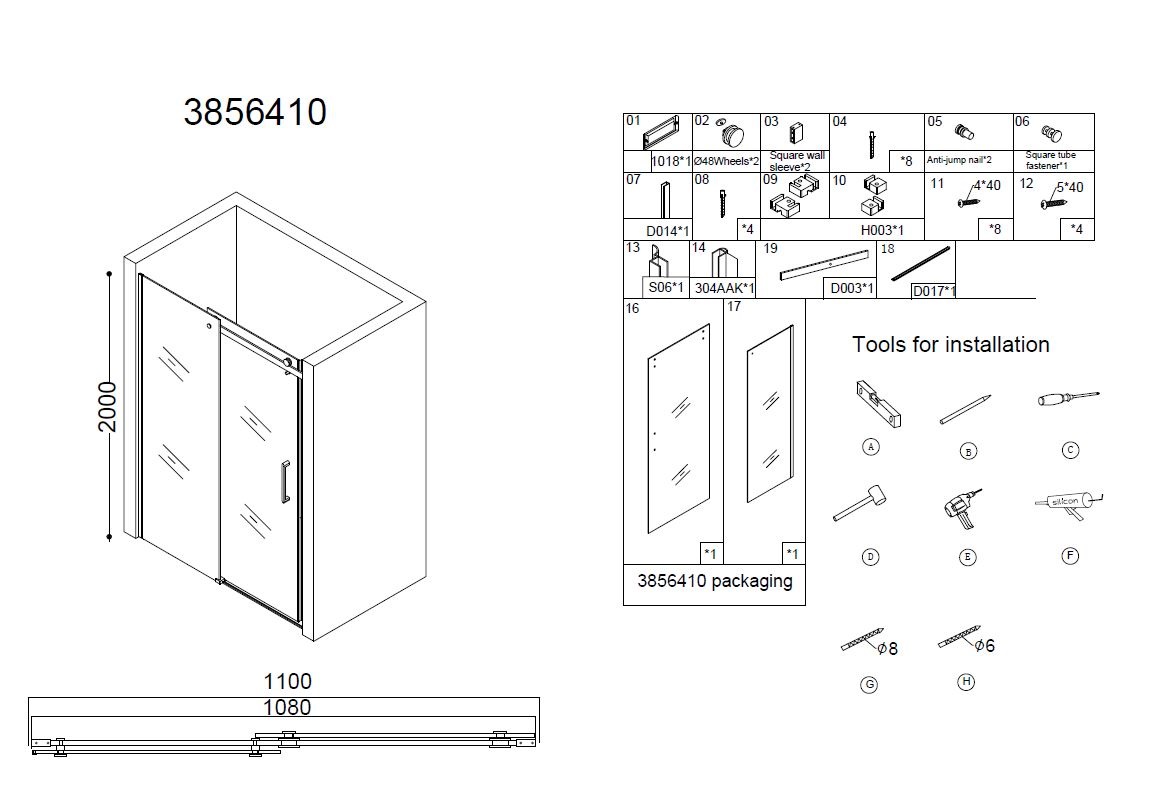 BD - Erico nisdeur schuif 108-110cm H=200cm NANO glas 8mm