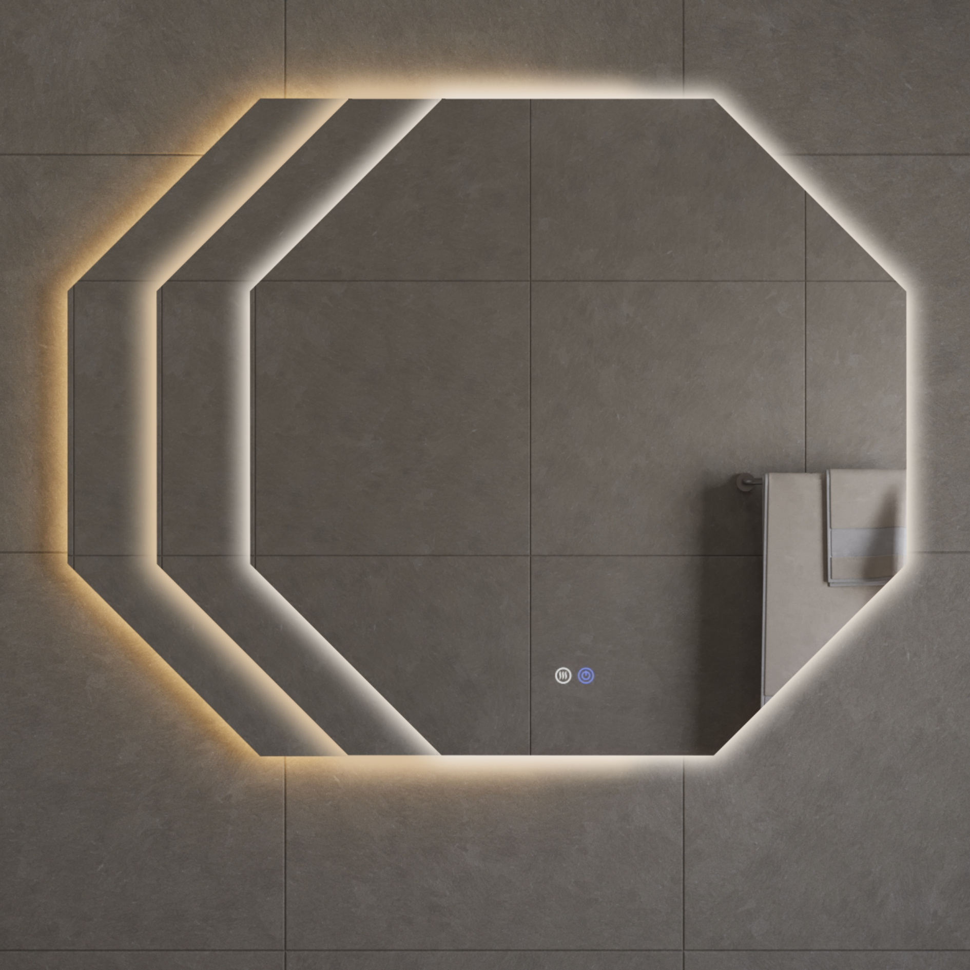 BD - Honey Octagon spiegel incl.verwarming, 3 kleuren LED verlichting, dimbaar 80x80cm