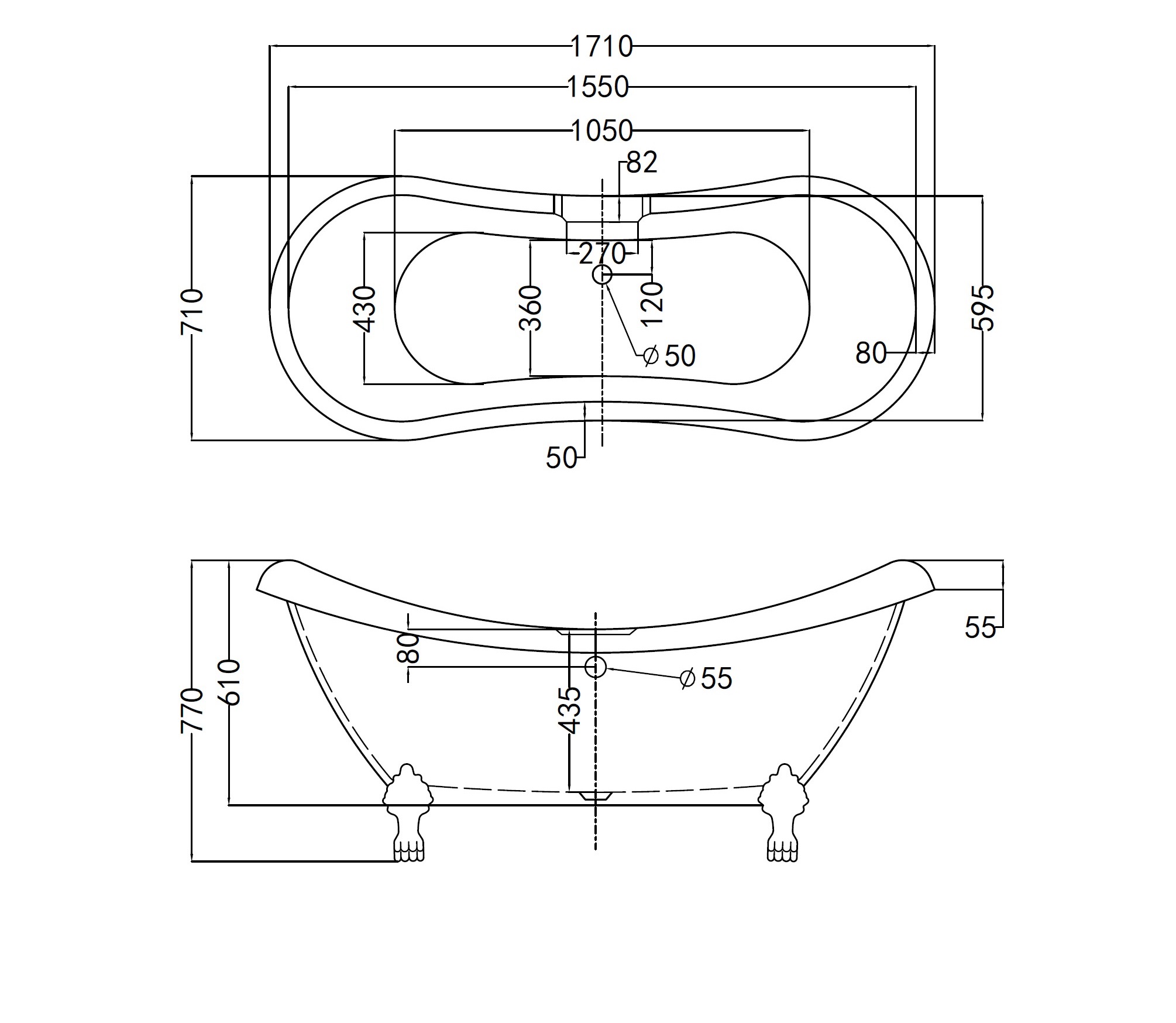 BD - Liberty Sidcup nostalgisch bad 171x71x77cm inclusief poten