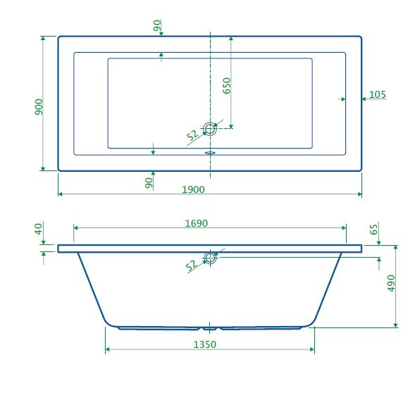 BD - Lounge-190 bad 190x90x49cm zonder poten
