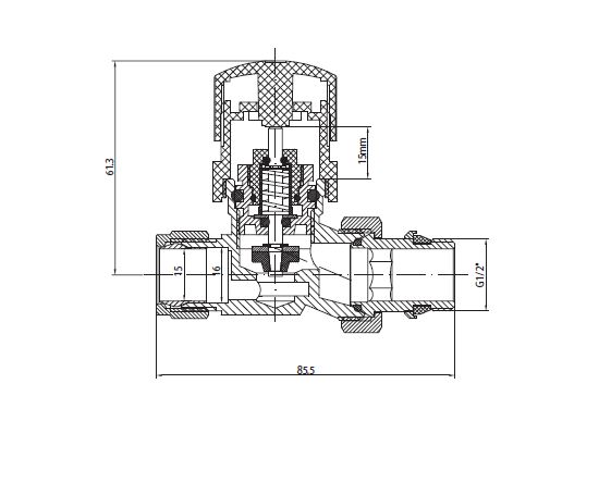BD - luxe Thermostatische radiatorkraan recht 1/2''x15mm