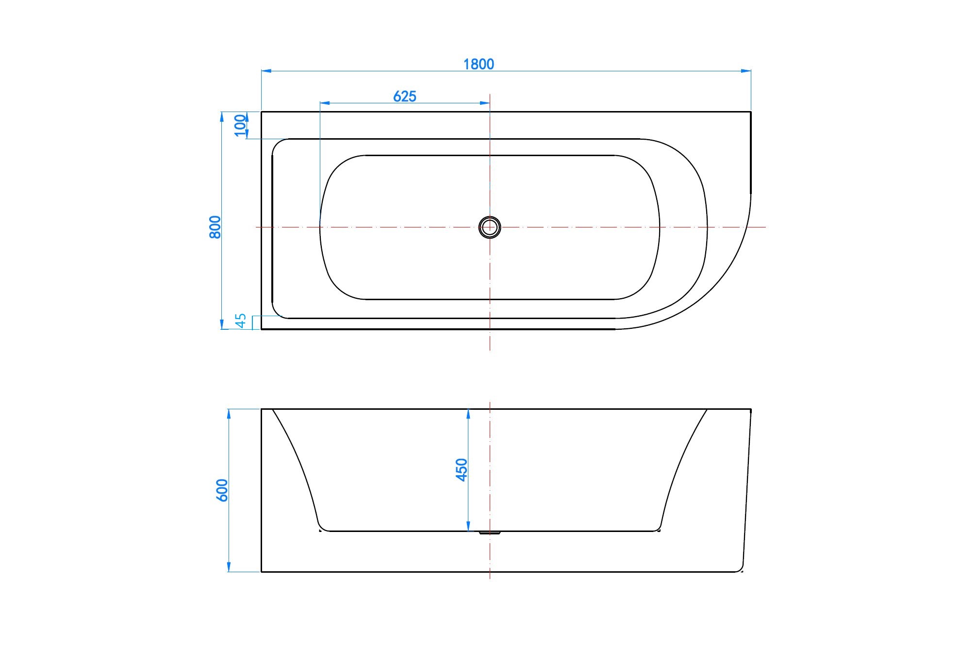 BD - Munster-Links Half Vrijstaand Hoekbad 180x80x60cm