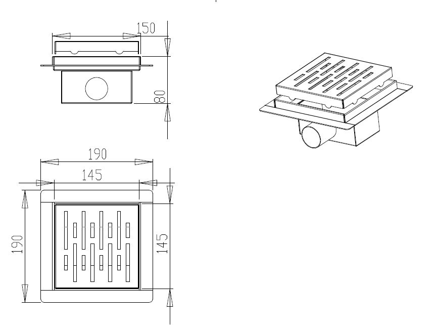 BD - N-Square doucheput met flens 15x15x7.7cm