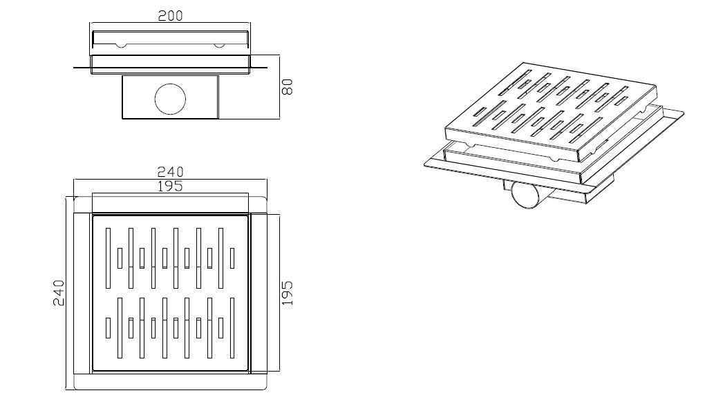 BD - N-Square doucheput met flens 20x20x7.7cm