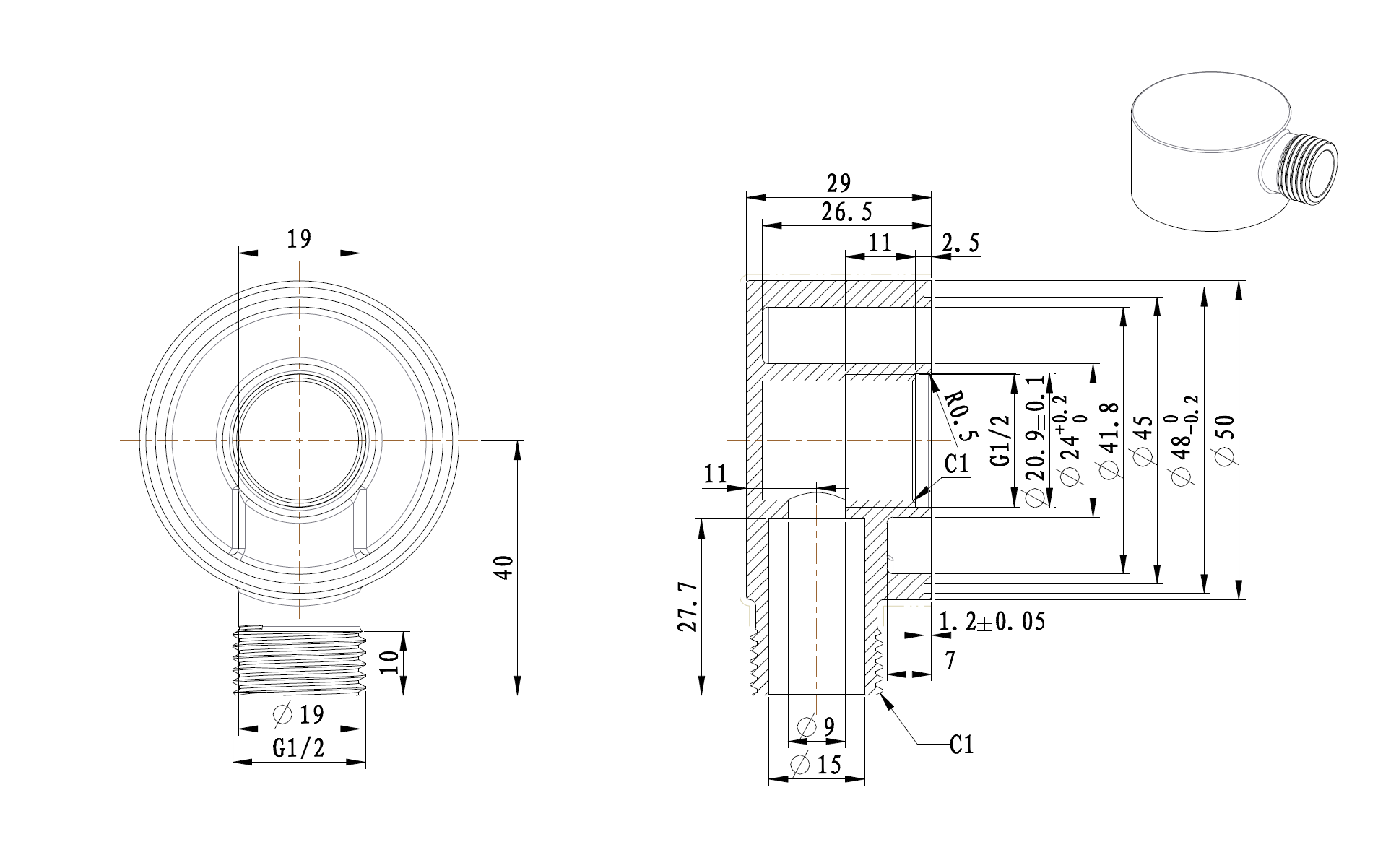 | Afmeting | 1/2 x 1/2 |