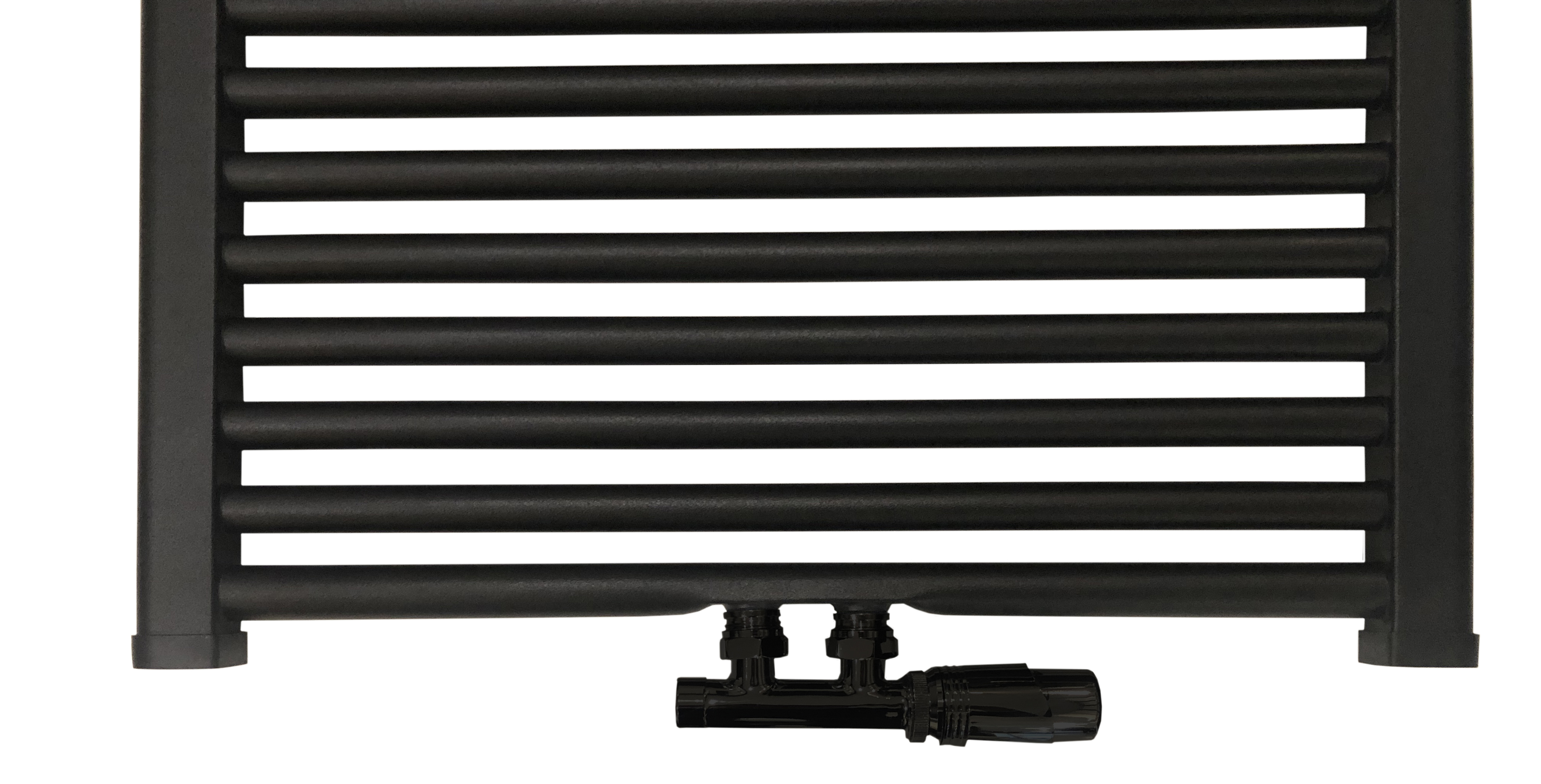 BD - Nero-Luxe radiator-aansluitset Midden onder Haaks universeel Mat-Zwart (DS-ROOD)