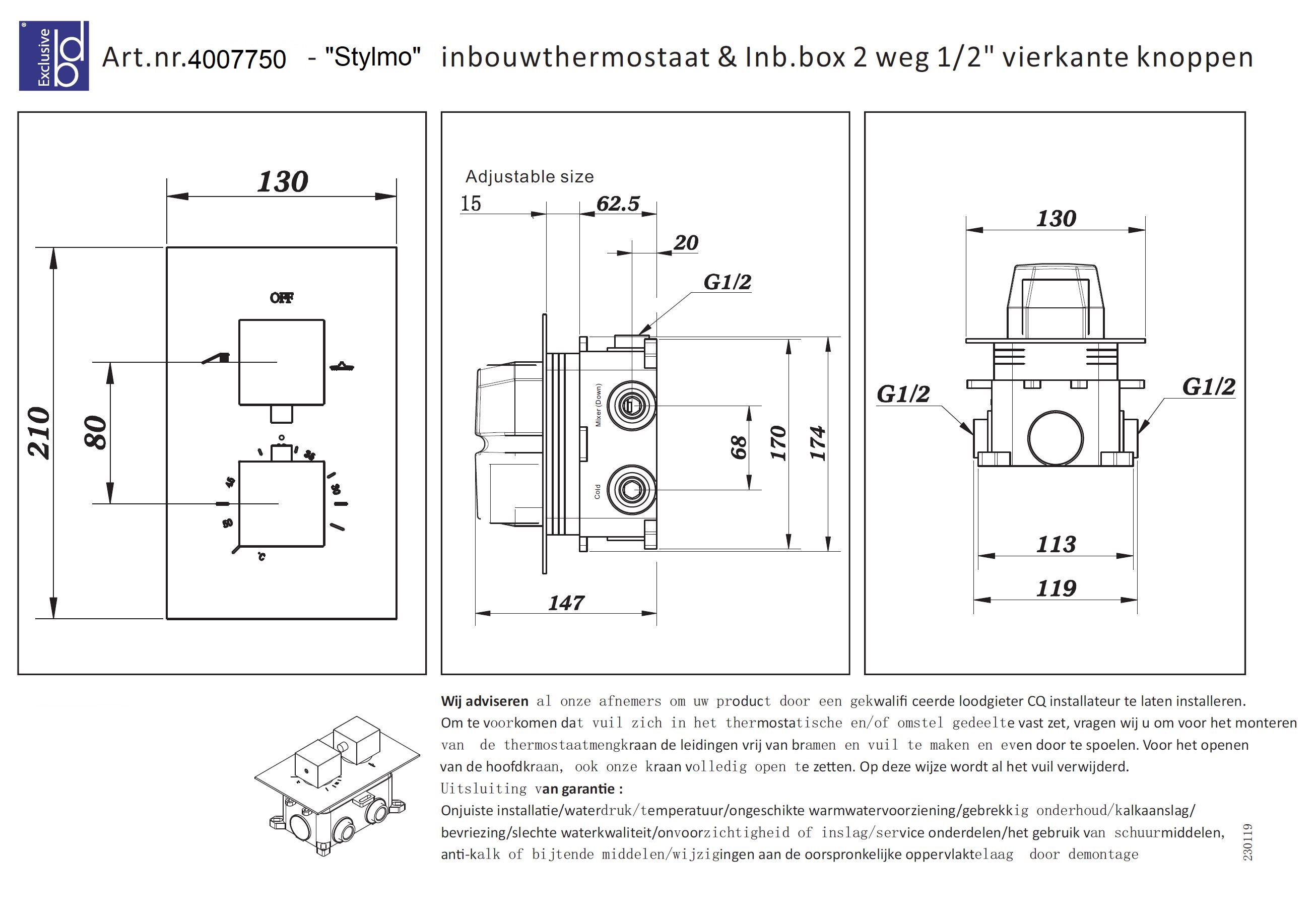 + Aansluiting (inch): 1/2 inch