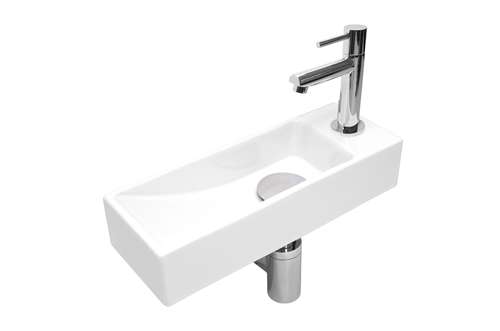 Een wastafel met slimme afmetingen die stijl en functionaliteit combineert. Het duurzame keramiek biedt een frisse uitstraling en lange levensduur. Ideaal voor toiletruimtes of badkamers waar elke centimeter telt.