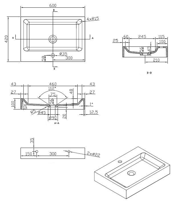 BD - Opera-60 wastafel Just-Solid 60x42x10cm