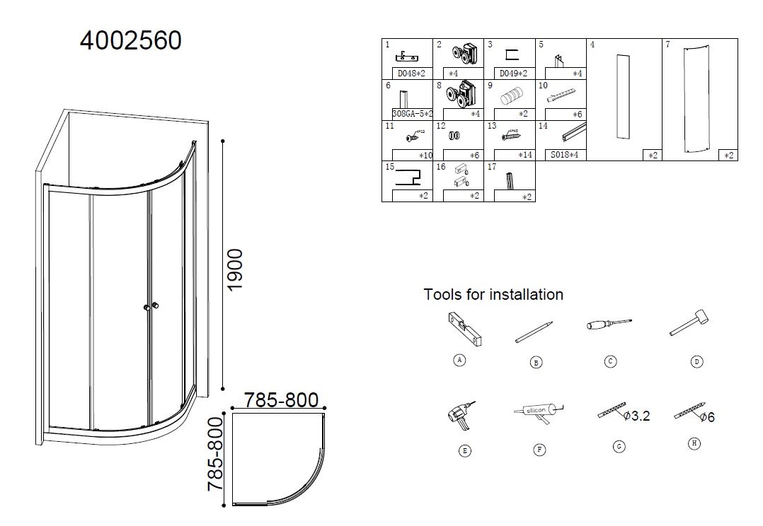 | Afmeting | 80x80x190cm |
