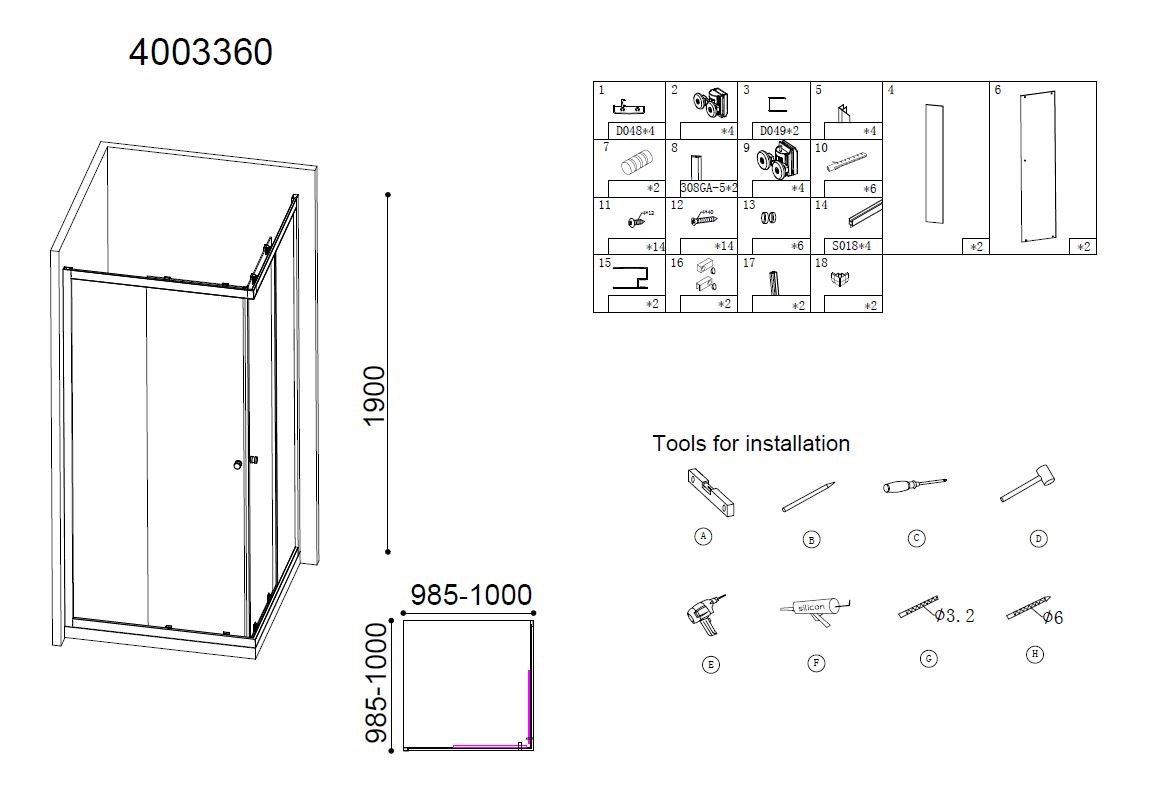 BD - Project douche hoekinstap 100x100x190cm glas 5mm