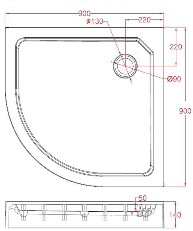 BD - Project opbouwdouchebak 1/4 rond 90x90x14 cm R=550
