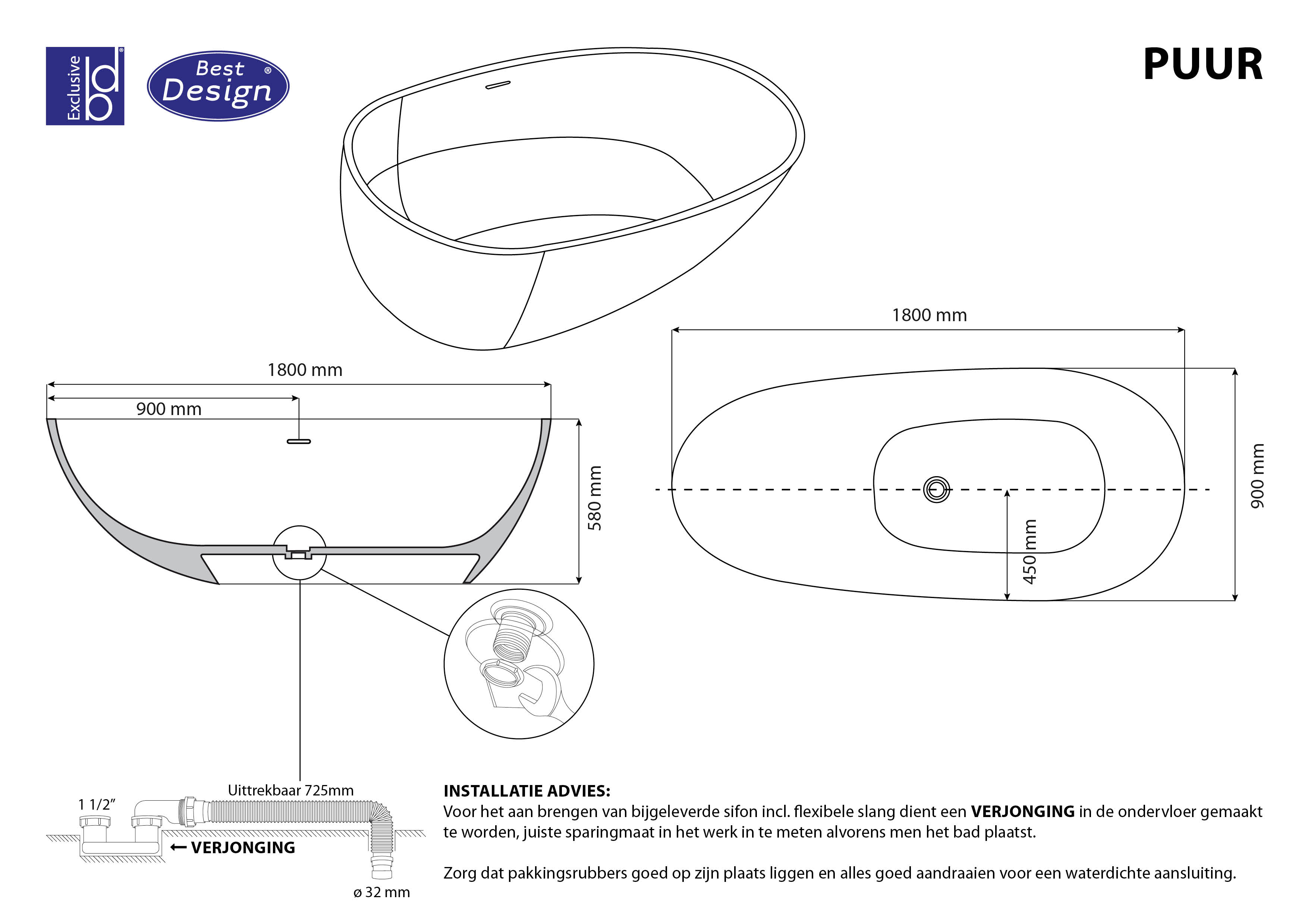 BD - Puur vrijstaand bad Just-Solid 180x90x58cm