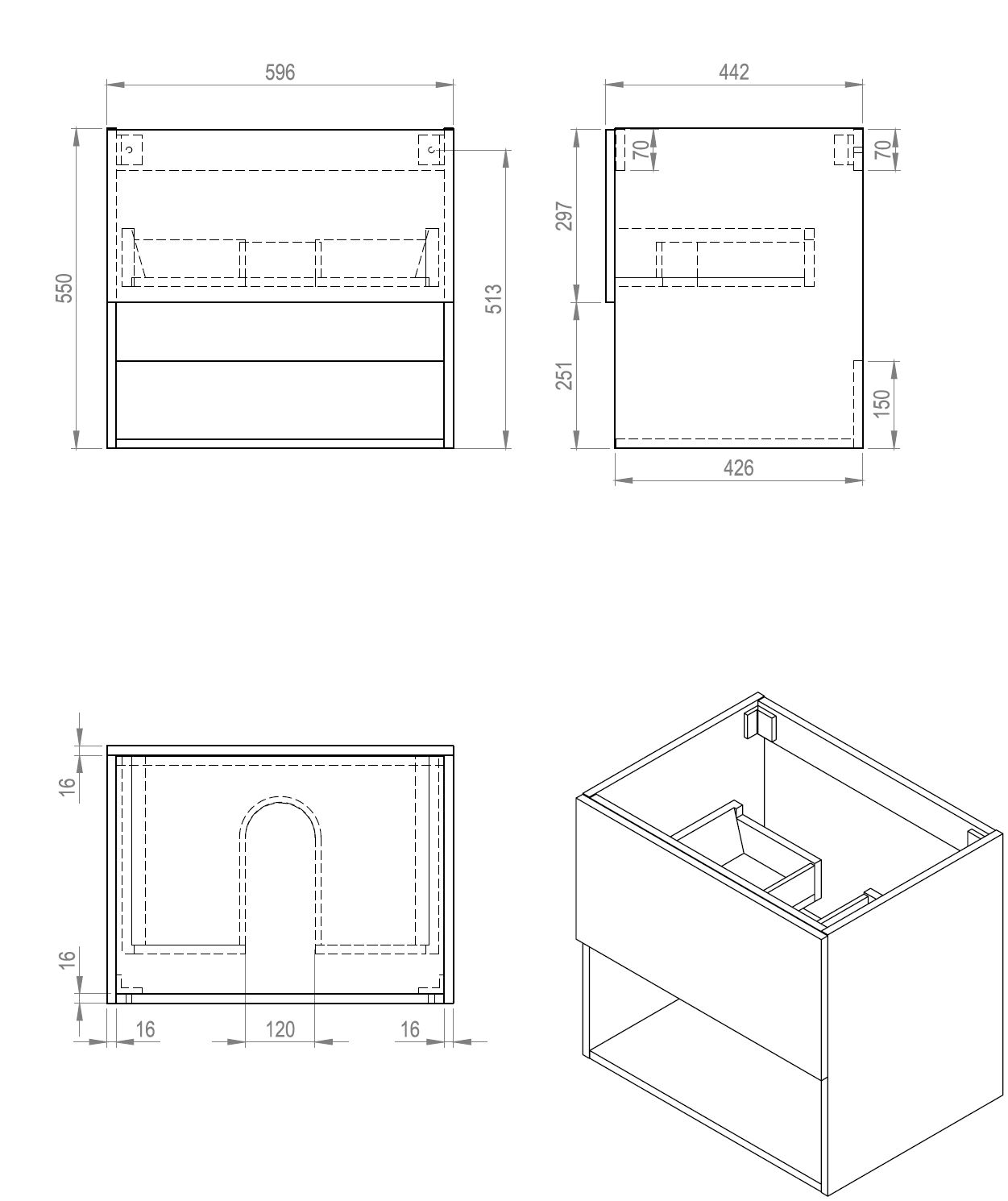 + Afwerking onderkast / kolomkast: Vochtwerende pvc folie