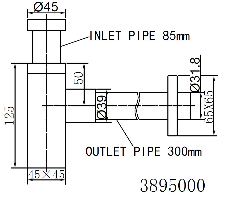 BD - Square sifon 5/4 x 32 mm RVS-look