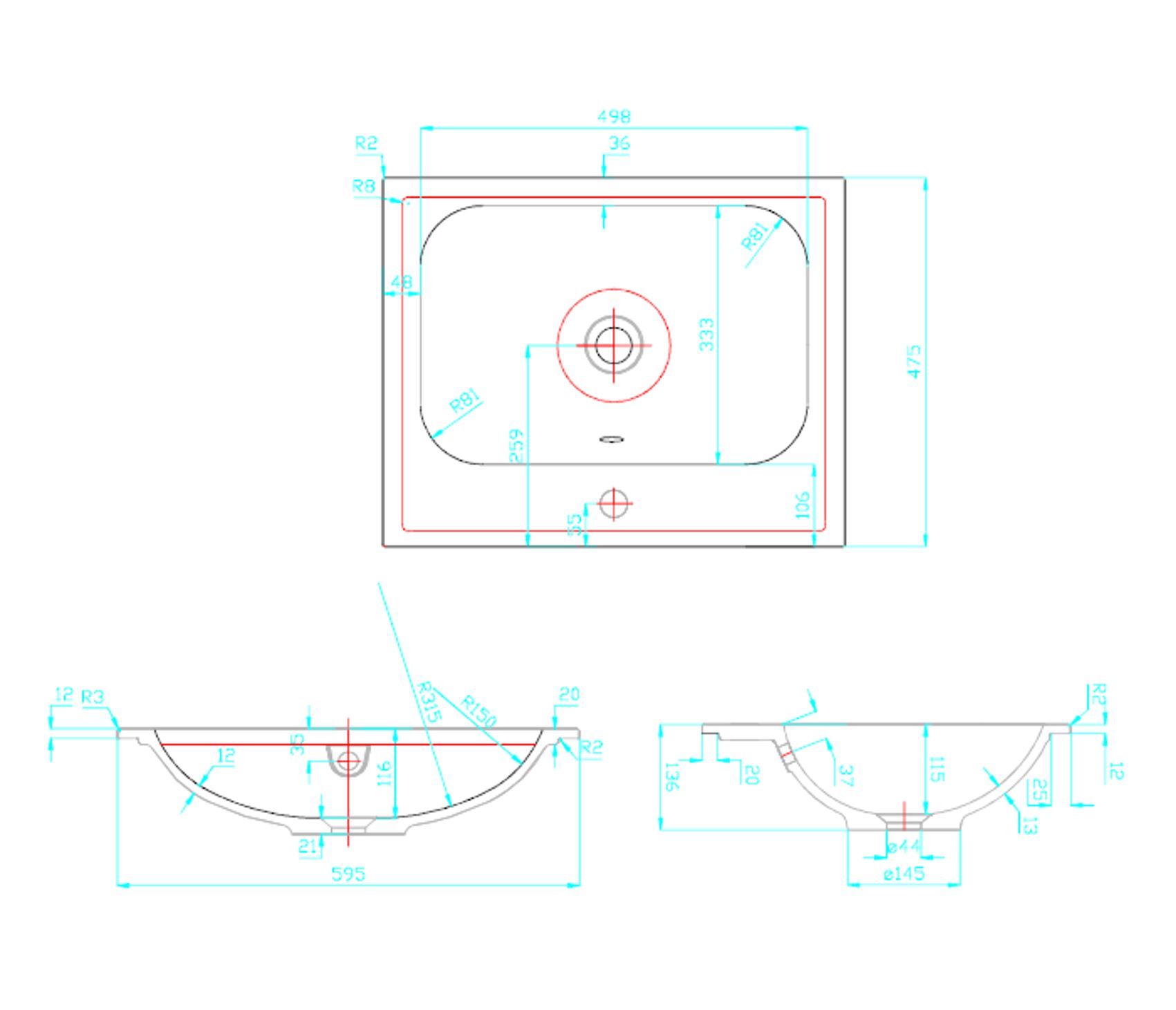 BD - wastafel 60 cm tbv meubel Splash zonder kraangat