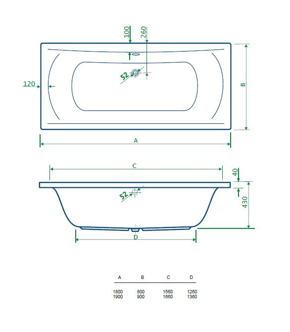BD - Wellness bad 180x80x42cm zonder poten