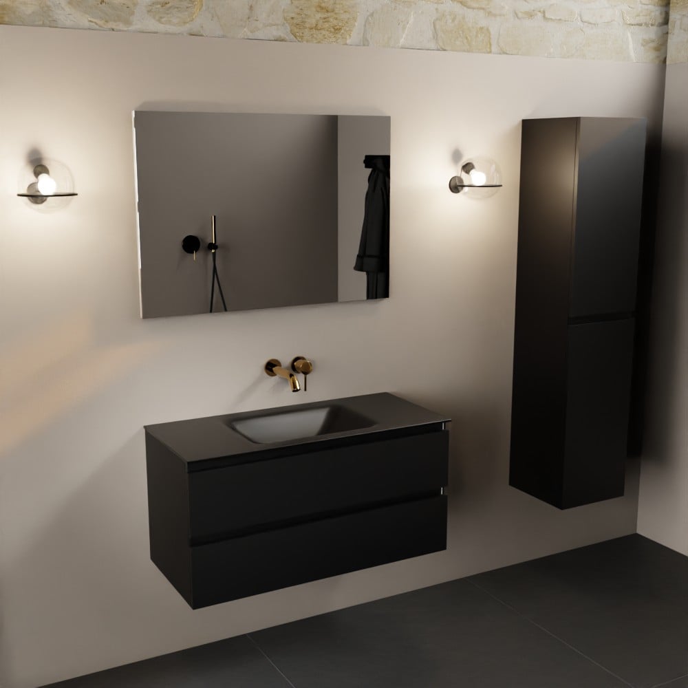 MONDIAZ AIVY 100cm badmeubel Urban, wastafel Urban solid surface midden zonder kraangat met spiegel