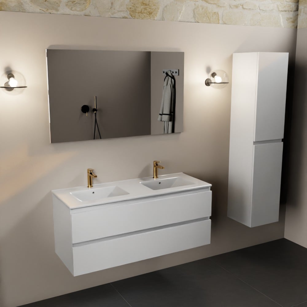 MONDIAZ AIVY 120cm badmeubel Talc, wastafel glanzend wit keramiek dubbel 2 kraangaten
