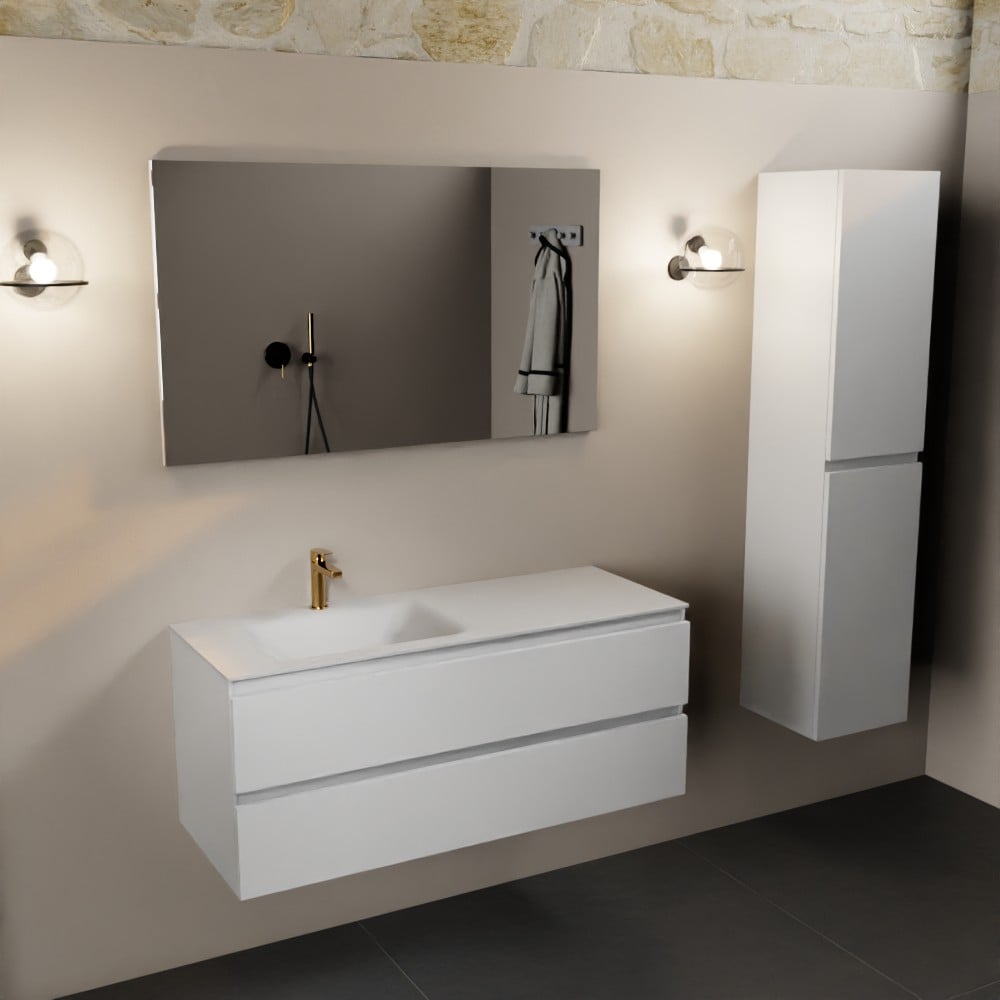 MONDIAZ AIVY 120cm badmeubel Talc, wastafel Talc solid surface links 1 kraangat