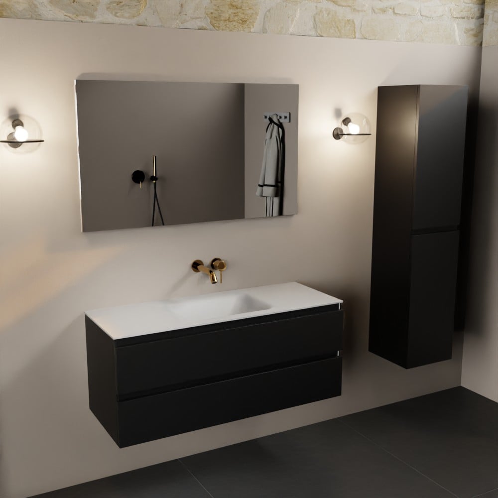 MONDIAZ AIVY 120cm badmeubel Urban, wastafel Talc solid surface midden zonder kraangat met spiegel
