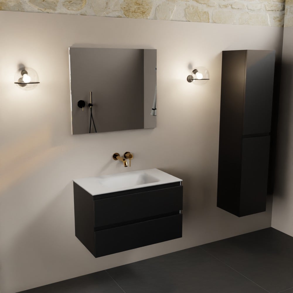 MONDIAZ AIVY 80cm badmeubel Urban, wastafel Talc solid surface midden zonder kraangat met spiegel