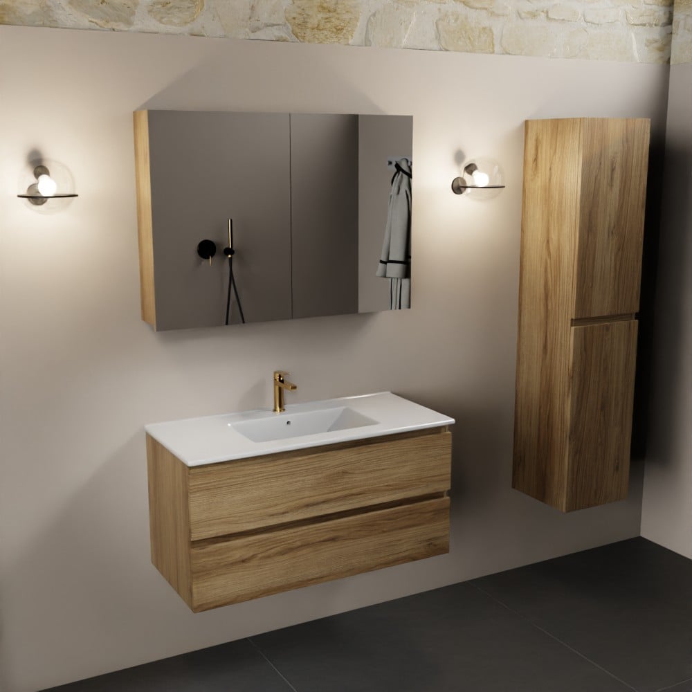 MONDIAZ AIVY 100cm badmeubel Chai, wastafel glanzend wit keramiek midden 1 kraangat met spiegelkast