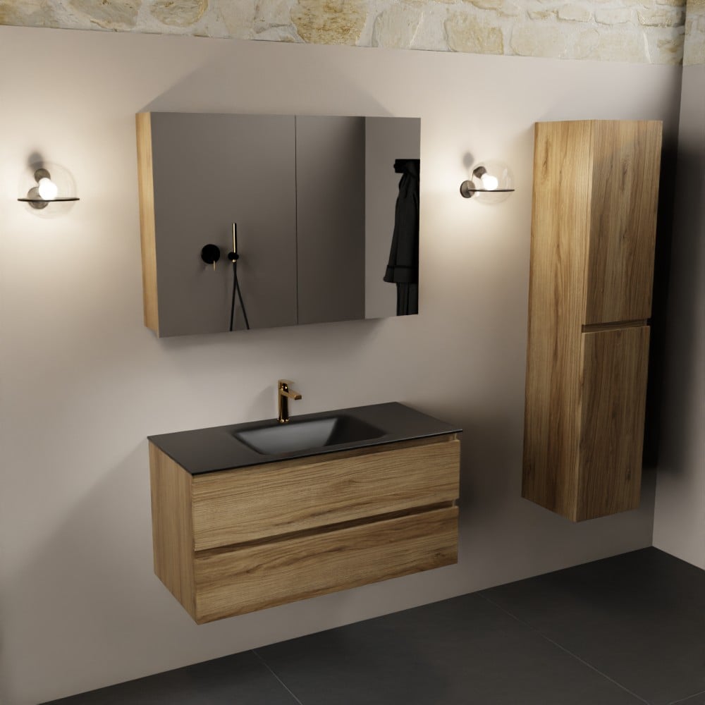 MONDIAZ AIVY 100cm badmeubel Chai, wastafel Urban solid surface midden 1 kraangat met spiegelkast