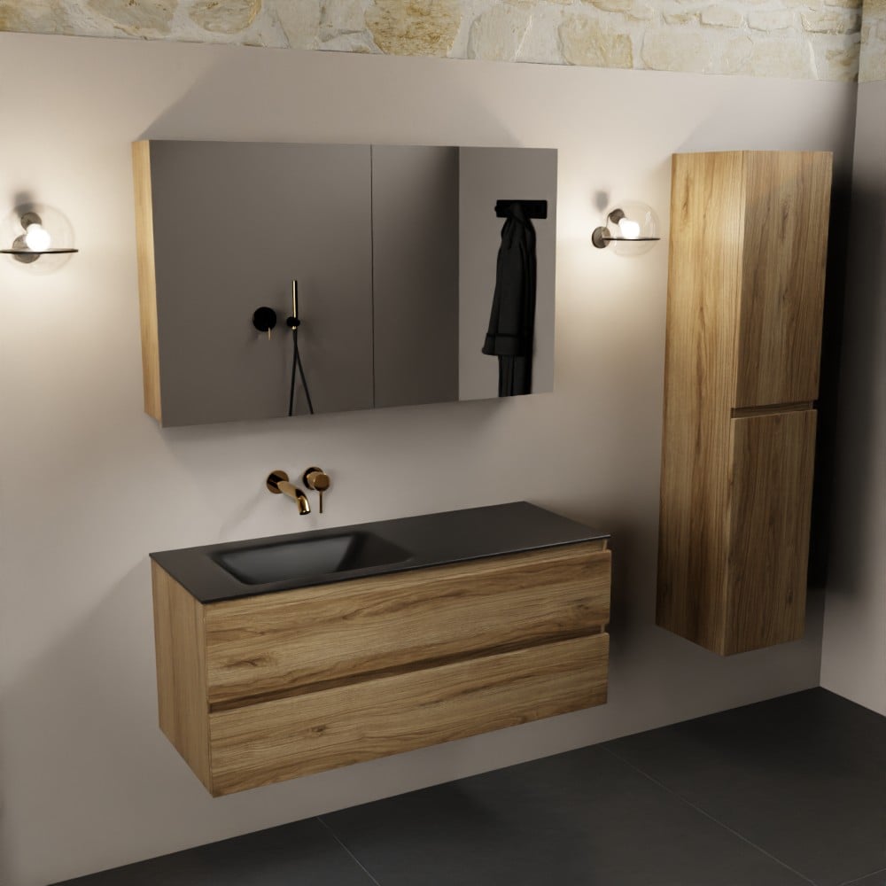 MONDIAZ AIVY 120cm badmeubel Chai, wastafel Urban solid surface links zonder kraangat met spiegelkast