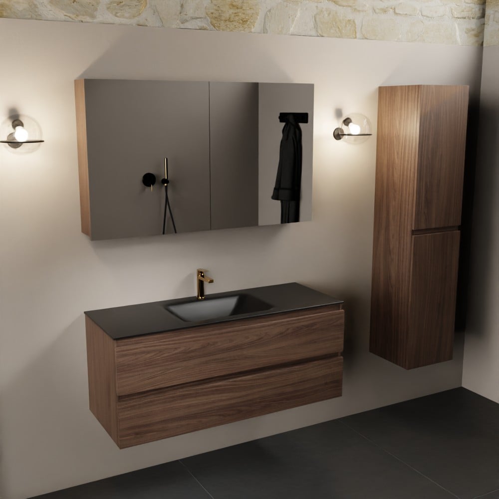 MONDIAZ AIVY 120cm badmeubel Mocha, wastafel Urban solid surface midden 1 kraangat met spiegelkast