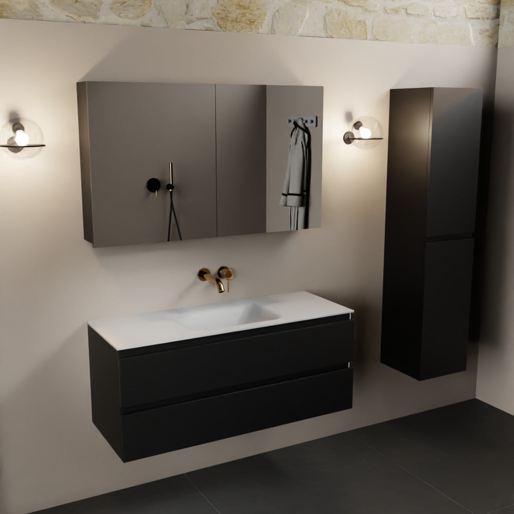 MONDIAZ AIVY 120cm badmeubel Urban, wastafel Talc solid surface midden zonder kraangat met spiegelkast