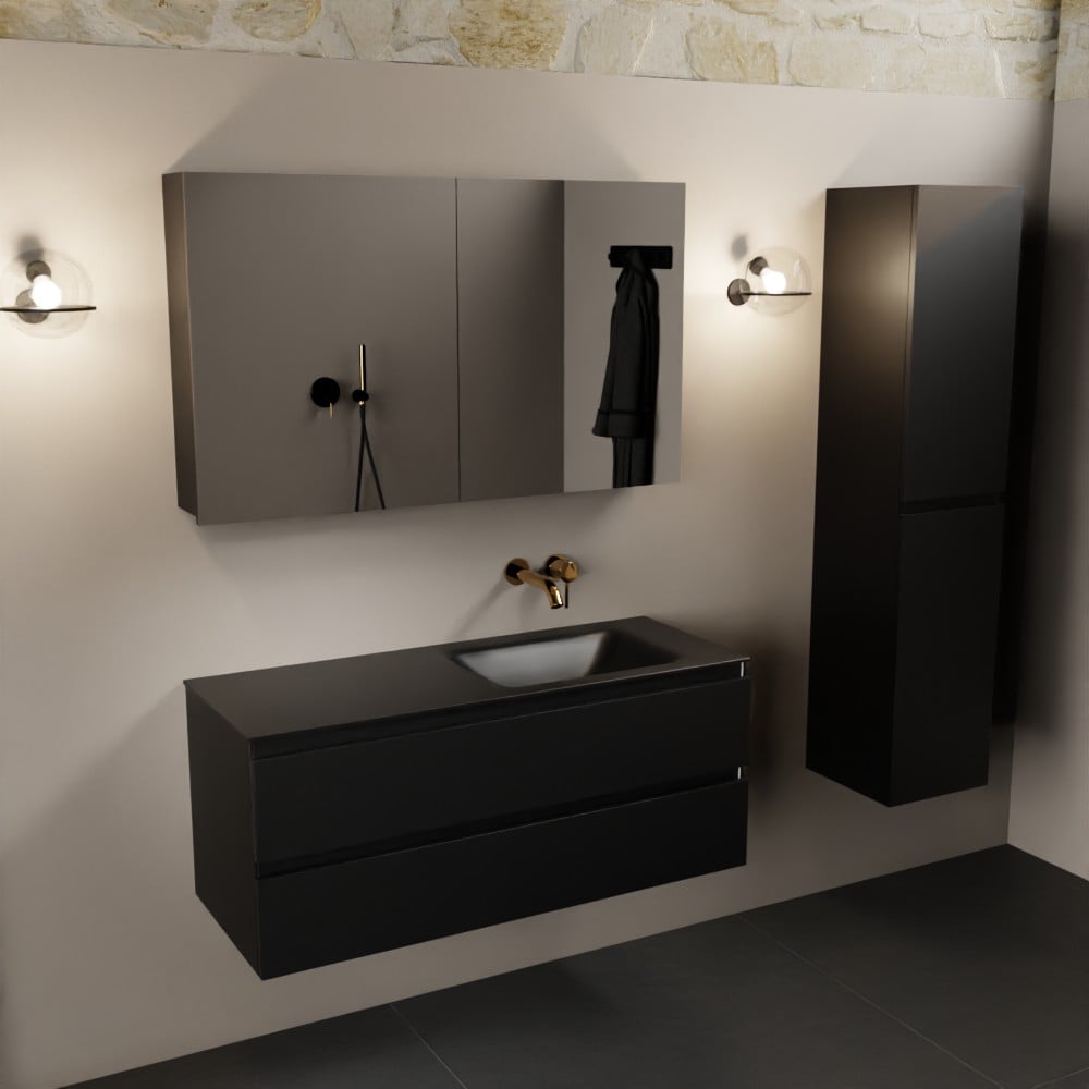 MONDIAZ AIVY 120cm badmeubel Urban, wastafel Urban solid surface rechts zonder kraangat met spiegelkast