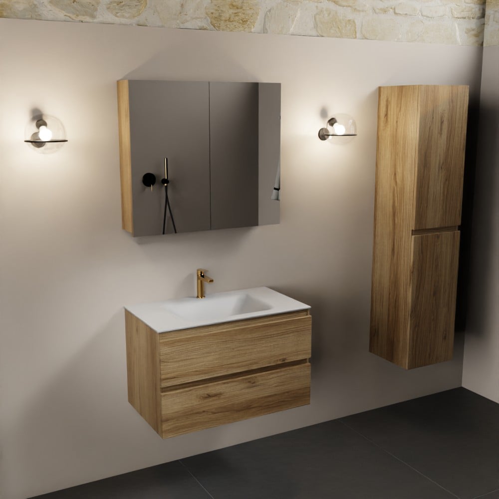 MONDIAZ AIVY 80cm badmeubel Chai, wastafel Talc solid surface midden 1 kraangat met spiegelkast