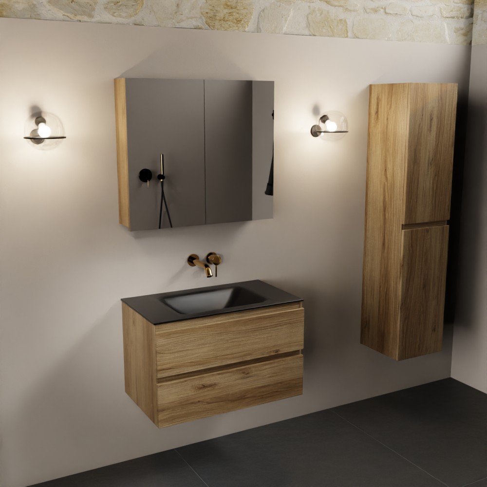 MONDIAZ AIVY 80cm badmeubel Chai, wastafel Urban solid surface midden zonder kraangat met spiegelkast
