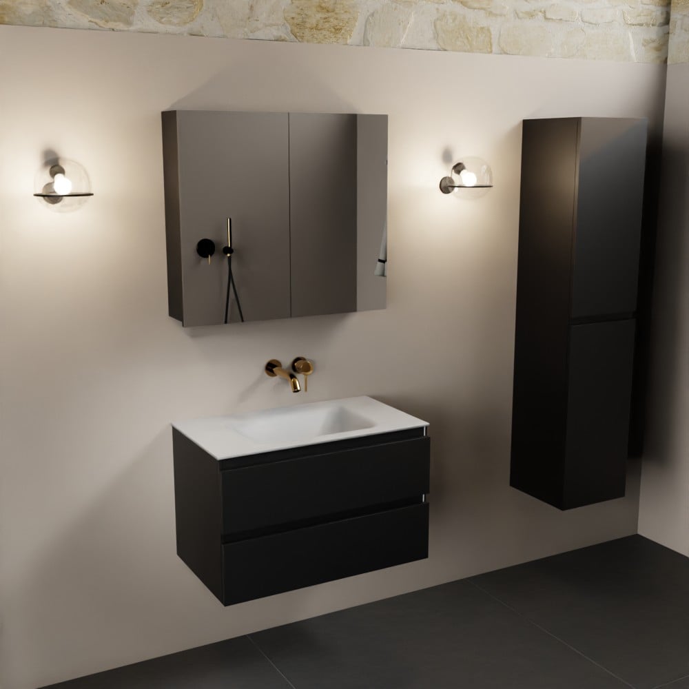 MONDIAZ AIVY 80cm badmeubel Urban, wastafel Talc solid surface midden zonder kraangat met spiegelkast