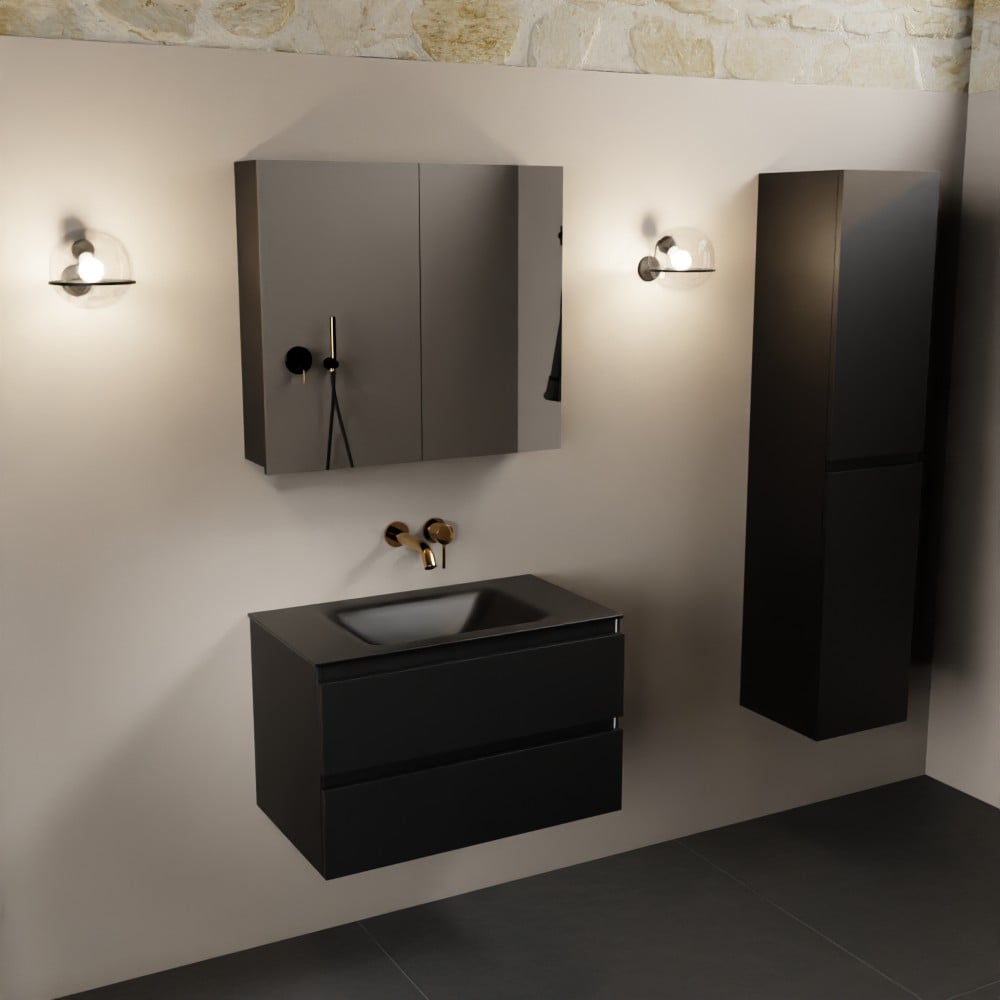 MONDIAZ AIVY 80cm badmeubel Urban, wastafel Urban solid surface midden zonder kraangat met spiegelkast